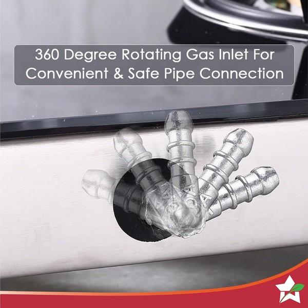 PIEZO AUTO IGNITION: No need for a gas lighter or a match stick, as the Piezo auto ignition system ignites the burners as soon as the knob is turned and rotated anti-clockwise, enabling easy and safe ignition.