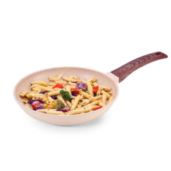 STYLISH COOKWARE - Duralife Die-cast Fry Pan adds elegance to your kitchen with its Ivory colour and wood-finish soft-touch handle, offering a comfortable grip.