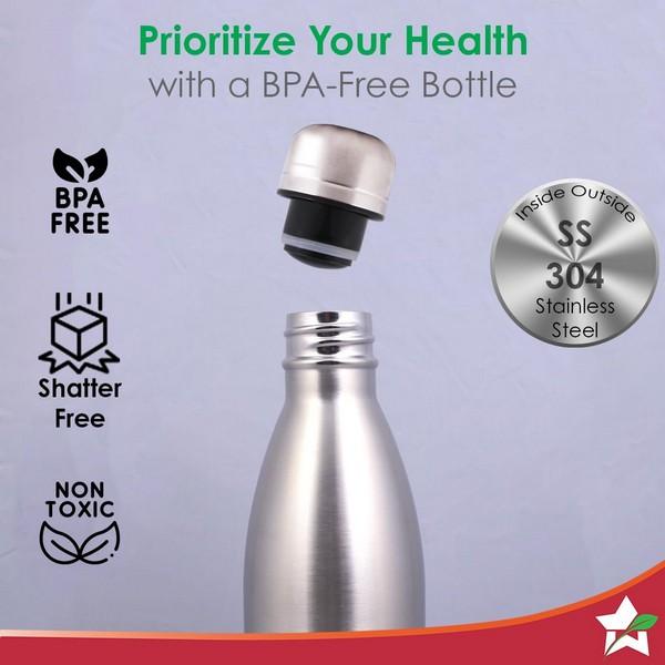SUPERIOR FOOD GRADE : Made of the 304 food-grade, Rust proof , non-toxic stainless steel. Body and lids are BPA-free. Water inside retains 100% pure, clean taste even after continuous usage. The secure seal in the lid is leak proof.