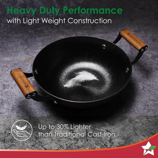 IDEAL FOR HOME CHEFS & PROS: This high-quality kadai, featuring professional-grade construction, is the perfect choice for both home chefs and culinary experts.