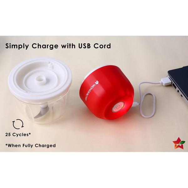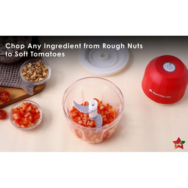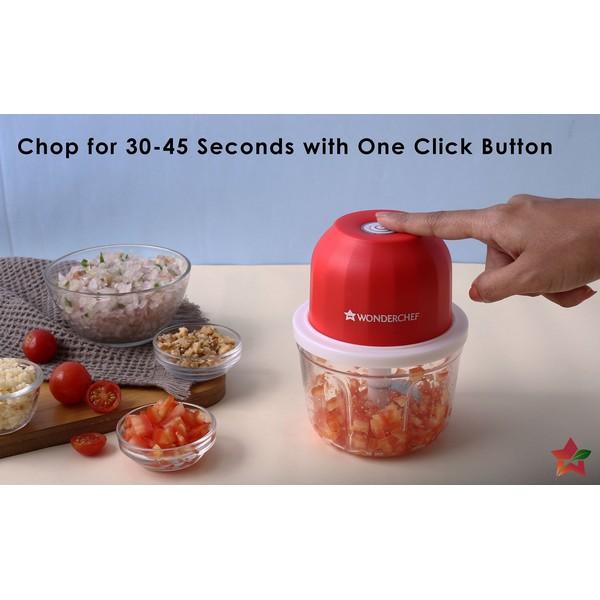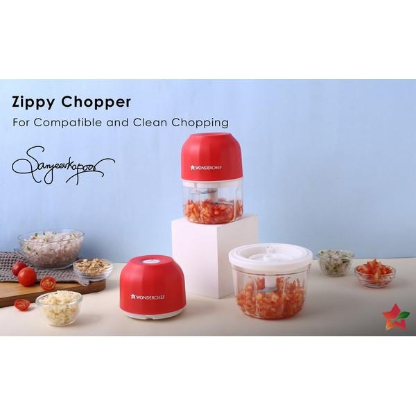 High-performance and easy to use, the Wonderchef Zippy Cordless Chopper is an ideal addition to your kitchen. At the simple press of a button, its easy operation allows it to chop ingredients. Additionally, with up to 30 W motor, this chopper ensures that you can chop everything in as little as 30 to up to 45 seconds. This chopper makes chopping onions, chillies, tomatoes, garlic, ginger, and nuts quick and easy. Furthermore, it features three 304-grade stainless steel sharp blades that deliver consistent results.